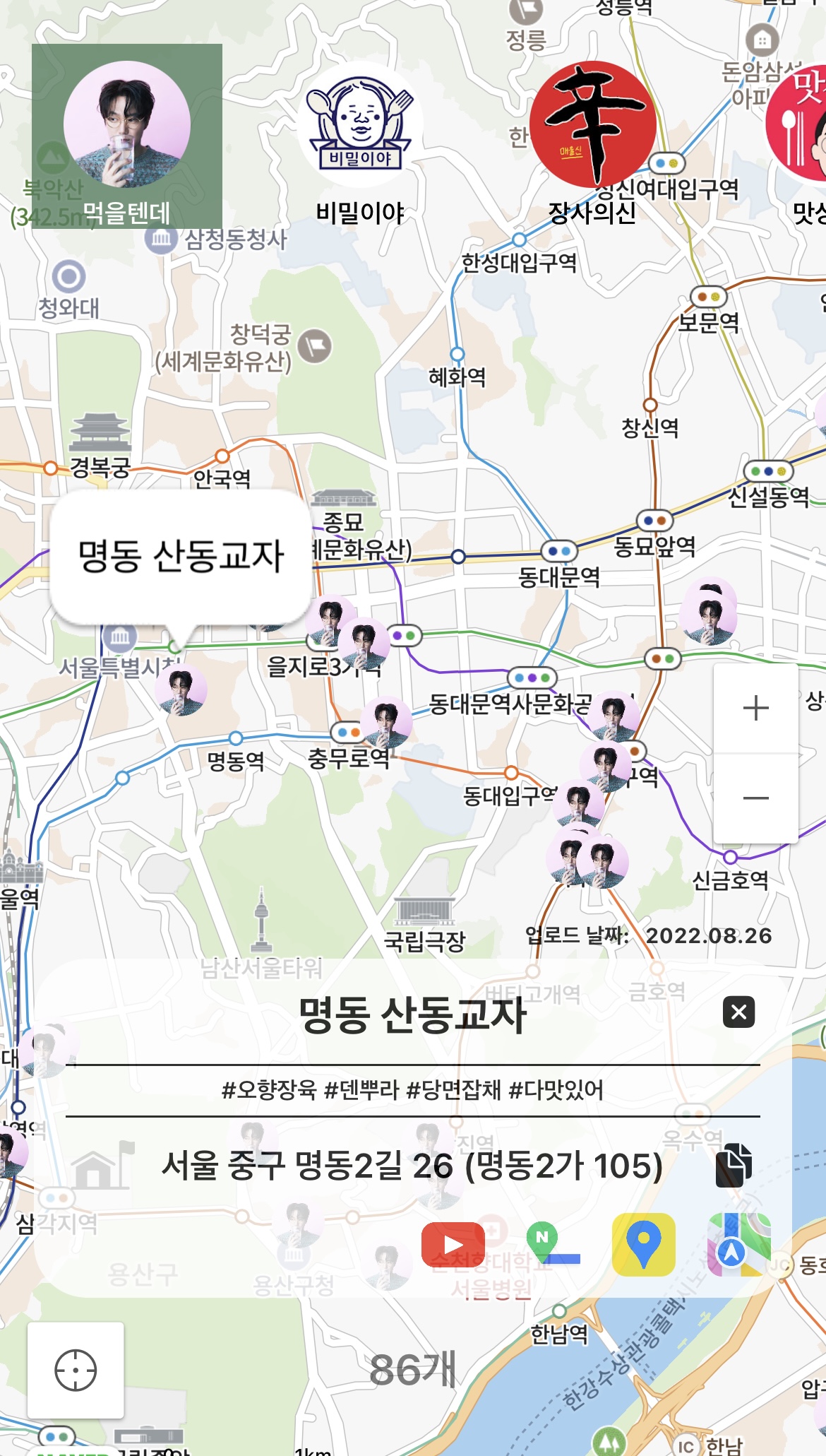 업데이트 패치내용 * 10/23 (월) 맛집 추가 - 먹을텐데 최신화 - 장사의신 최신화 - 김사원세끼 최신화 - 홍석천이원일 최신화 - 섬마을훈태 10곳 추가 ※ 10/19(목) 업데이트 1.0v -> 1.1.0v - 메인 탭이나 지도 탭에서 사용할 수 있는 길찾기 기능을 기존 네이버맵, 내장맵에서 카카오맵 기능 추가. - 환경설정 페이지에서 맛집 장소 업데이트 내용을 확인 할 수 있는 버튼 추가. 카테고리 없음 2023.10.19